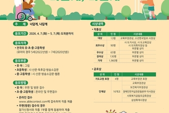 장애인먼저실천운동본부(이사장 이수성)는 오는 4월 20일 ‘장애인의 날’을 맞아, 전국 유·초·중·고등학생을 대상으로 장애 인식 개선을 위한 ‘제28회 전국 학생 백일장’을 개최한다. 1999년 시작되어 올해로 28회를 맞는 ‘전국 학생 백일장’은 학생들이 글과 그림으로 장애에 대한 생각을 표현하며 서로의 다름을 이해하는 대표적인 장애 이해 교육 행사다. 이번 행사는 장애인먼저실천운동본부와 소년한국일보, 삼성화재가 공동 주최하고 교육부, 보건복지부, KBS한국방송공사, WBC복지TV, 사랑의열매 사회복지공동모금회가 후원한다. 올해 주제는 ‘너답게, 나답게’다. 서로의 개성과 차이를 존중하며 함께 살아가는 사회의 의미를 되새기고, 일상에서 느낀 경험과 생각을 자유롭게 작품으로 표현하면 된다. 참가 대상은 유아(5~7세)부터 고등학생까지이며, 부문별 응모 분야는 유아(그림), 초등학생(시, 산문, 독후감, 방송소감문), 중·고등학생(시, 산문, 방송 소감문, 웹툰)으로 나누어져 있다. 특히 방송소감문은 장애인의 날 특집 방송인 ‘대한민국 1교시’나 청소년 장애 이해 교육 드라마 ‘알라르간도’를 시청한 후 작성하여 제출하면 된다. 초등학생 대상의 ‘대한민국 1교시
