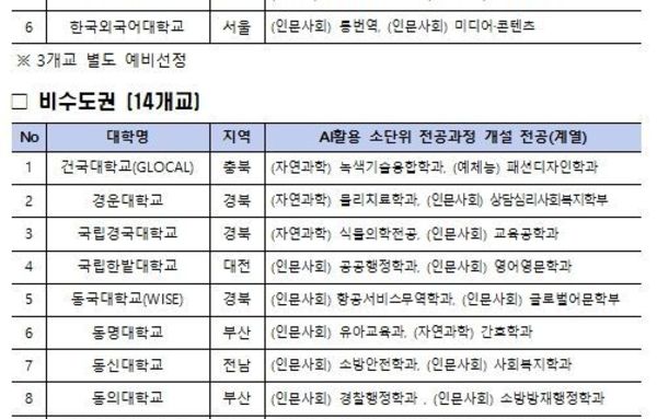 [대한민국교육신문] 교육부와 한국산업기술진흥원(원장 민병주)은 3월 31일 ‘2026년 첨단산업 인재양성 부트캠프 인공지능(AI) 융합과정 운영대학’ 선정 결과를 발표했다. ‘첨단산업 인재양성 부트캠프’는 대학과 기업이 공동으로 개발·운영하는 1년 이내 단기 집중교육을 통하여, 실무역량을 갖춘 첨단 인재를 양성하는 사업이다. 2026년 현재 인공지능(AI), 반도체, 이차전지, 바이오, 디스플레이, 항공우주, 미래차, 로봇 등 총 8개 분야에서 88개교가 참여하고 있다. 올해는 인공지능 대전환(AX)에 대응하고, 첨단분야 학생들의 인공지능(AI) 융합 역량을 제고하기 위하여, 인공지능(AI) 융합과정 지원 내용이 신설됐다. 이에 따라, 반도체, 바이오 등 첨단산업 인재양성 부트캠프를 운영하고 있는 기존 대학 중 10개교가 선정되어 5억 원을 추가로 지원받는다. 선정 대학은 첨단산업 인재양성 부트캠프 사업을 통해 구축한 대학-기업 협력체계를 활용하여, 첨단산업 분야별로 특화된 인공지능(AI) 융합과정을 운영하게 된다. 선정된 대학들은 구체적으로 △인공지능(AI) 관련 기반(인프라) 확보, △인공지능(AI) 분야 교원과의 팀티칭 활성화, △중·고급 인공지능 융합