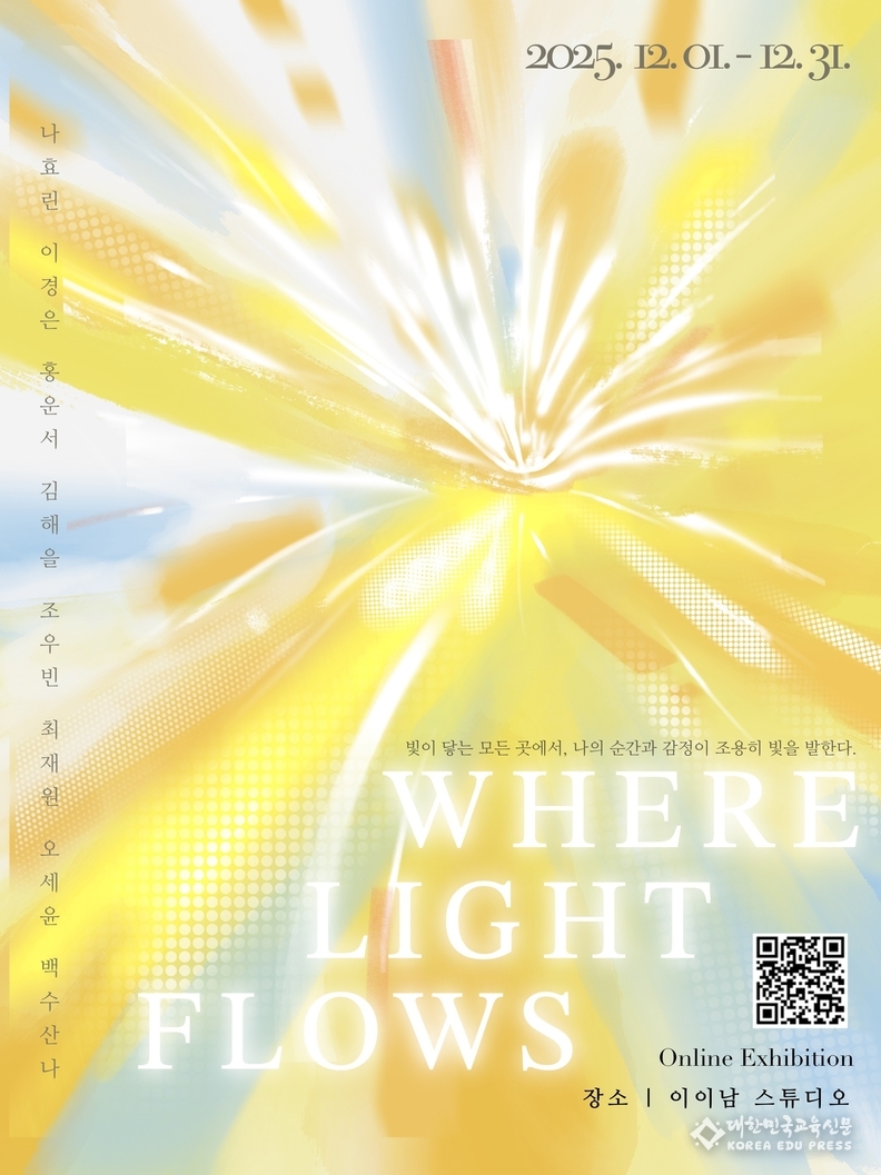 광주예술고는 오는 31일까지 이이남 스튜디오 1층에서 미디어아트 전시 ‘빛으로 여는 희망의 계절’을 선보인다. 전시에 참여한 미술과 1, 2학년 학생 7명은 백수산나 미디어아트 강사의 지도로 ‘어도비 애프터 이펙트(Adobe After Effects)’를 활용한 영상 작품을 구현했다. 특히 ▲달려라 산타(1학년 나효린·이경은·홍운서 학생) ▲신년화평(1학년 김해을·조우빈·최재원 학생) 등 학생들의 창의적 시각을 담아낸 작품을 선보여 관람객들에게 새로운 예술적 영감을 선사한다. 미디어아트 전시는 평일 오전 11시부터 오후 9시까지 운영되며, 모든 작품은 정보무늬(하단 QR코드)를 통해 온라인으로도 감상할 수 있다.