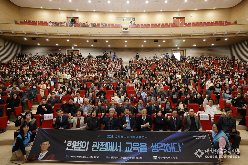 광주시교육청(교육감 이정선)은 12일 광주시교육청교육연수원에서 교직원 1천명을 대상으로 문형배 전 헌법재판관 초청 연수를 진행했다.