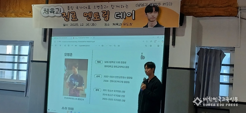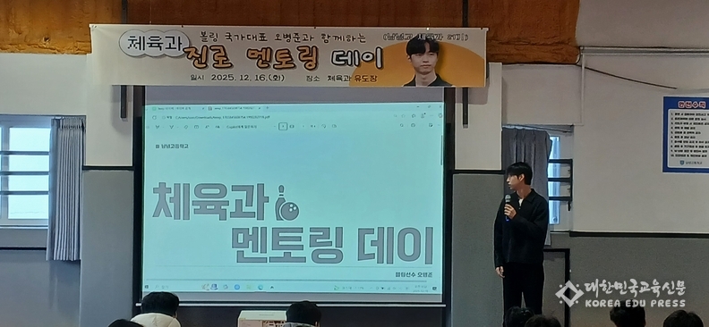 제주 남녕고등학교(교장 이철우)는 국가대표 출신 볼링 선수이자 현재 대구북구청 실업팀 소속인 오병준 선수를 초청해 후배들을 위한 특별 진로 멘토링을 진행했다. 이번 행사는 단순히 진로 정보를 전달하는 자리가 아니라, 학생들이 자신의 꿈을 발견하고 도전을 향해 나아갈 수 있는 희망과 용기를 심어주기 위해 마련되었다.