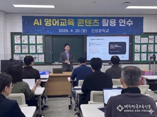 청송교육지원청은 20일 진성중학교에서 교사를 대상으로 AI 영어교육 콘텐츠 활용 연수를 운영하며 사업의 현장 안착에 나섰다.