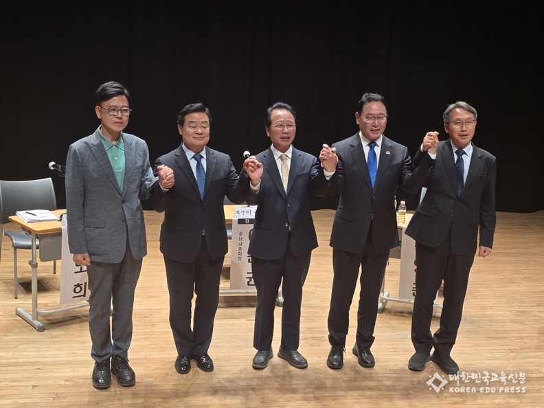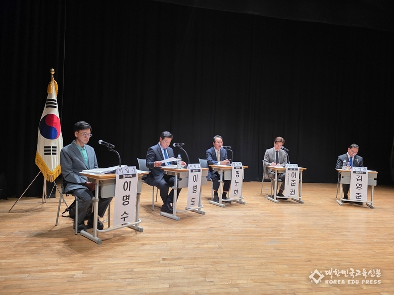 충남교육감 선거를 앞두고 예비후보들이 한자리에 모여 교권 회복과 미래교육 방향을 두고 치열한 정책 토론을 펼쳤다. 충남교총과 충청투데이가 공동 주최한 ‘충남교육감 예비후보자 초청 토론회’에는 이명수, 이병도, 명노희, 김영춘, 한상경 후보가 참석해 교육 현장의 핵심 과제에 대한 해법을 제시했다.