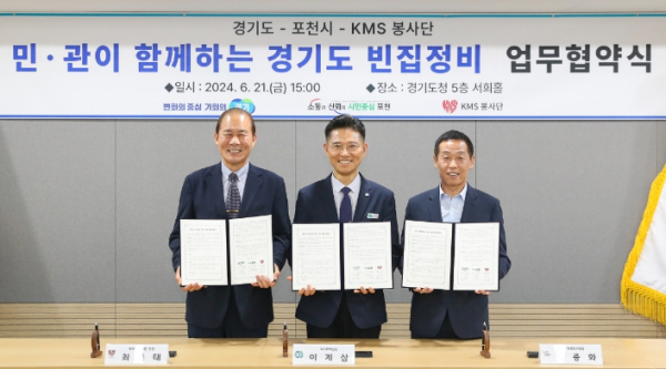 [대한민국교육신문] 경기도는 21일 도청에서 포천시, KMS봉사단(단장 최준태)과 ‘민․관이 함께하는 경기도 빈집정비 업무협약식’을 개최했다.
