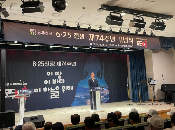 [대한민국교육신문] 동두천시는 25일, 6·25전쟁 제74주년을 기념해 평생학습관 2층 공연장에서 ‘6·25전쟁 제74주년 기념식’을 개최했다.