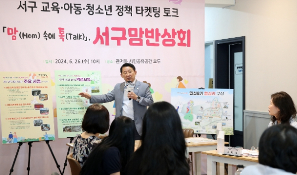 이날 만남도 서구에서 아동 청소년 인구가 제일 많은 관저동에서 거주하는 맘들을 만나는 현장 행정의 일환으로 정책 대상자들과 함께 서구의 교육·아동·청소년 정책에 대해 진솔하게 소통하는 시간으로 진행됐다.