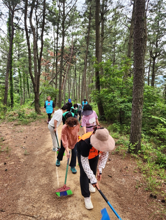이날 회원들은 상대산 등산로 일대에 버려진 쓰레기를 줍고, 건강과 힐링을 위해 조성한 황톳길 맨발 걷기 구간에 흩어져있는 침엽수 낙엽과 자갈, 나뭇가지 등을 깨끗하게 정리했다.