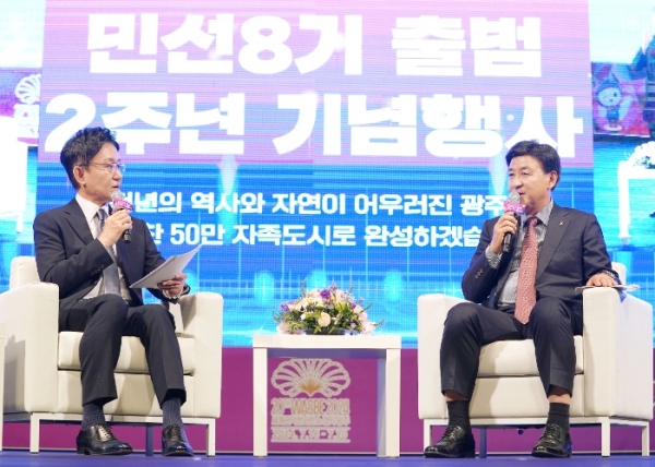 이날 행사는 손범수 아나운서의 사회로 진행됐으며 토크콘서트 형식으로 개최돼 광주시의 2년간 성과와 미래에 대해 이야기했다.