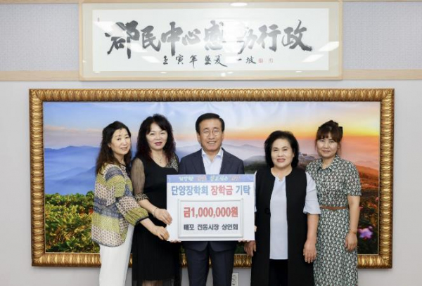 [대한민국교육신문] 매포전통시장상인회는 지난 8일 단양장학회에 장학금 100만 원을 기탁했다.