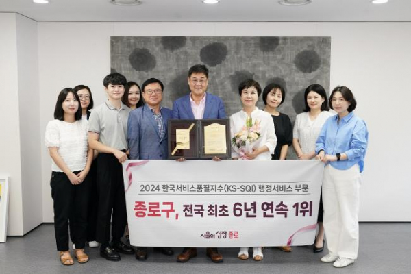 [대한민국교육신문] 종로구가 한국표준협회 주관 '한국서비스품질지수(KS-SQI)' 지방자치단체 부문에서 전국 최초 6년 연속 1위의 영예를 안았다.