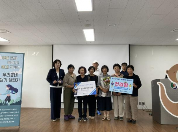 또한 6월 동네방네 걸어봐유 우수 걷기동호회는 읍면 지역에서 50명이 참여한 소태면(56.67%), 동 지역에서 67명이 참여한 문화동(67.32%)이 선정됐다.