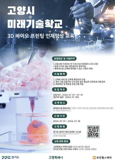 [대한민국교육신문] 고양특례시는 2024년 경기도 미래기술학교 지원 공모사업에 선정돼‘3D 바이오 프린팅 인재양성 교육’을 7월 30일부터 실시한다고 밝혔다.