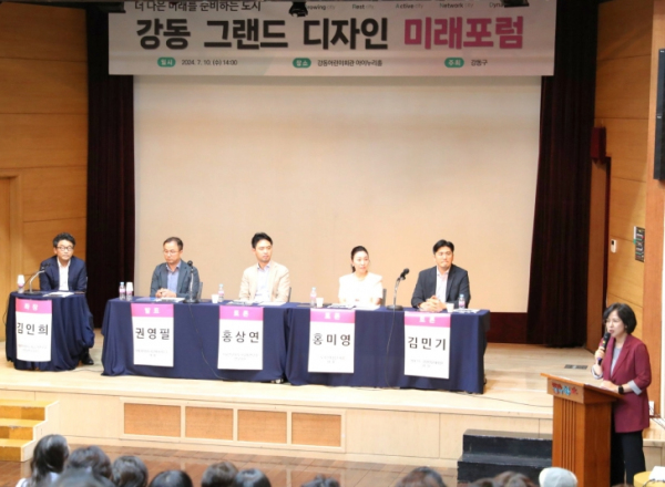 포럼에 참석한 이수희 강동구청장은 “강동 그랜드 디자인은 향후 강동구가 나아가야 할 지향점이고, 강동 그랜드 디자인이 서울시 도시계획 등 상위계획에 반영될 수 있도록 정확한 정보로 근거를 마련해 실현 가능성을 제고할 것”이라며 “앞으로도 미래 강동을 위해 강동 그랜드 디자인에 구민 여러분들의 많은 관심과 좋은 의견 부탁드린다”라고 말했다.
