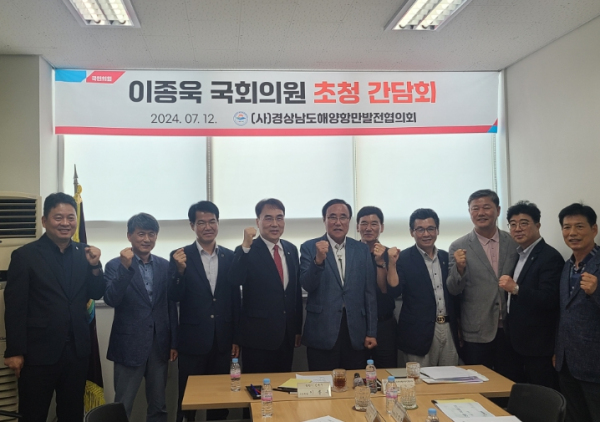 [대한민국교육신문] 경남도와 (사)경남해양항만발전협의회는 12일 이종욱 국회의원을 초청해 간담회를 열어 경남이 배제된 항만공사 명칭과 항만위원 추천권 정상화, 진해신항 지원시설 국비 확보 등 중요한 현안에 대해 논의하고 경남의 발전 방향을 모색했다.