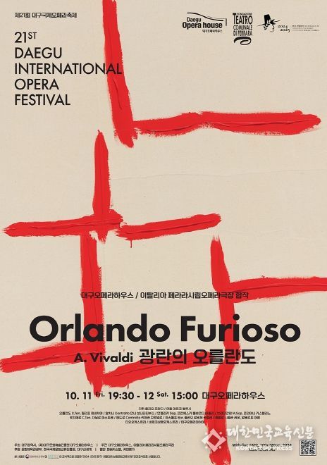 [대한민국교육신문] 대구오페라하우스는 ‘제21회 대구국제오페라축제’의 두 번째 메인 프로그램으로 비발디 오페라 ‘광란의 오를란도’를 오는 10월 11일과 12일 양일간 대구오페라하우스 극장에서 선보인다.