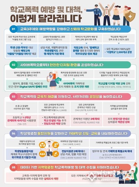 [대한민국교육신문] 교육부는 5월 1일, 제20차 학교폭력대책위원회(김경성 민간공동위원장 주재, 4.21)의 심의·의결을 거쳐 '제5차 학교폭력 예방 및 대책 기본계획(2025~2029)'을 발표한다.