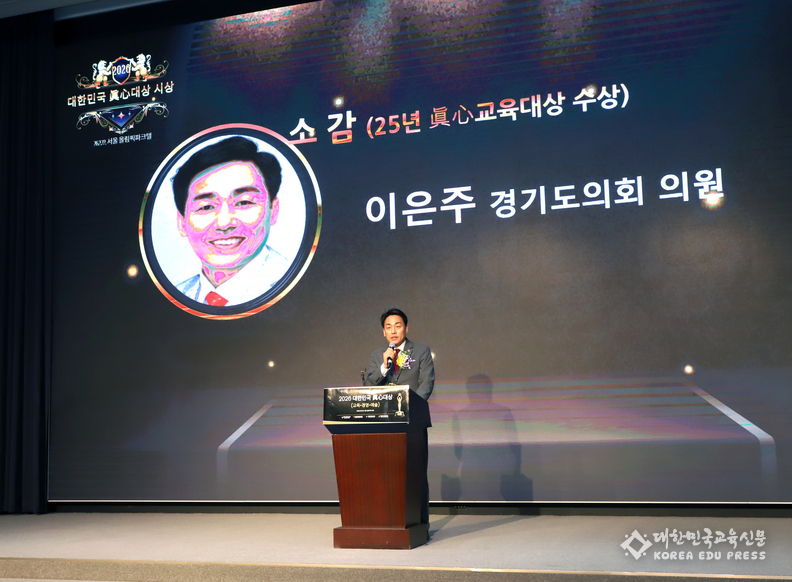 행사는 배소빈 전 KBS 아나운서의 사회로 진행됐으며, 언론사 박두한 회장의 환영사와 조정인 발행인의 격려사에 이어 나동균 교육신문 대표, 김영헌·최승호 고문의 축사가 더해지며 막을 올렸다. 특히 2025년 수상자인 이은주(경기도의회 의원)의 소감은 眞心대상이 이어가는 연대의 의미를 되새기는 시간이었다.
