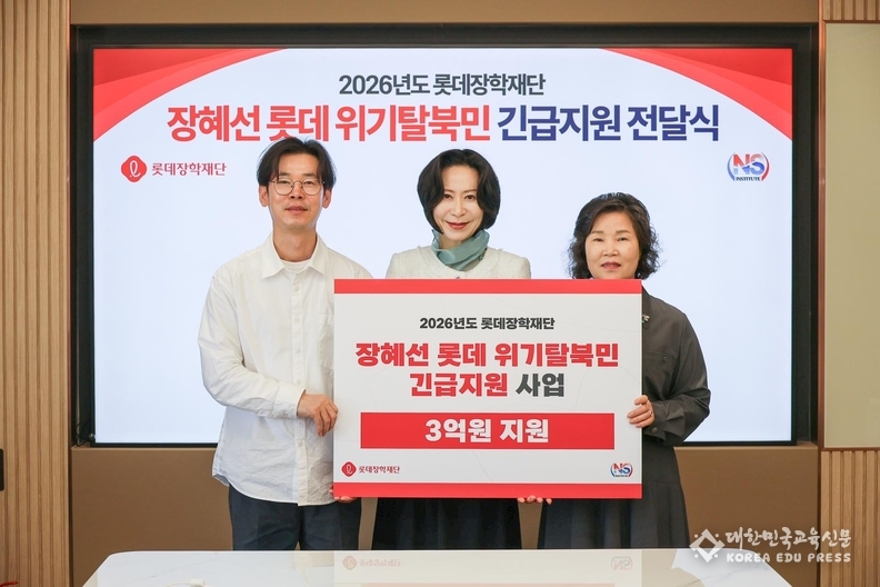 롯데장학재단(이사장 장혜선)은 지난 15일(수) 서울 중구에 위치한 재단 회의실에서 ‘2026년 장혜선 롯데 위기 탈북민 긴급지원 사업’ 전달식을 열고, 지원금 3억 원을 전달했다고 밝혔다.