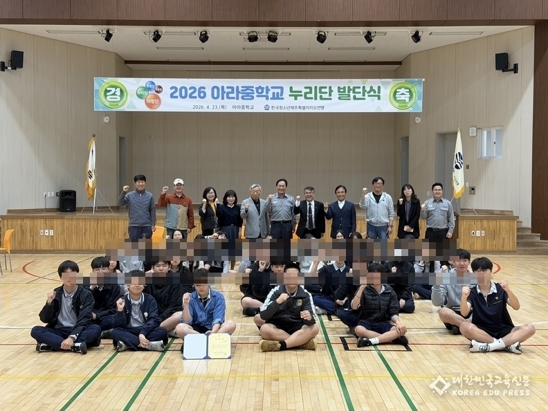 아라중학교(교장 고성무)는 4월 23일 교내 체육관에서 누리단 발단식을 개최했다.