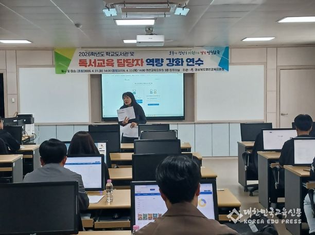 [대한민국교육신문] 경상북도 영천교육지원청은 지난 4월 21일부터 23일까지 이틀간 관내 초·중·고등학교 독서 및 도서관 업무 담당자 40명을 대상으로 '학교도서관 시스템 활용 연수 및 독서 활동 활성화 방안' 연수를 성공적으로 개최했다.