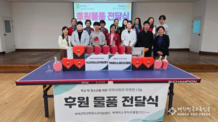 또한 백제미소로타리클럽은 탁구대 및 탁구용품을 후원해 청소년들이 자유롭고 안전한 환경에서 건강한 신체활동을 즐길 수 있도록 지원했다.