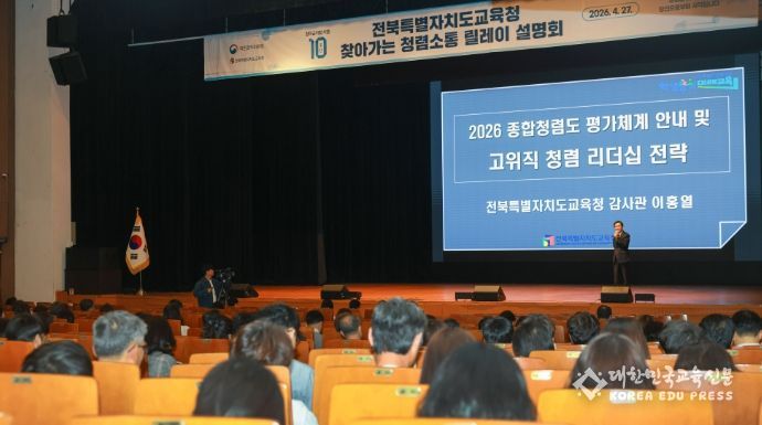 [대한민국교육신문] 전북특별자치도교육청은 27일 전주학생교육문화관에서 ‘2026년 행동강령책임관 등 청렴교육’을 실시했다.