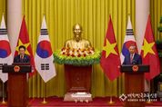 [대한민국교육신문] 이재명 대통령은 베트남 국빈 방문을 통해 베트남 신 지도부와의 정치적인 신뢰를 강화하는 한편, 인프라·에너지 등 분야로 협력을 더욱 고도화하는 계기를 마련했다. 위성락 국가안보실장은 23일(현지시간) 오후 베트남 하노이 프레스센터에서 브리핑을 통해 양국 정상회담 결과를 발표했다. 위 안보실장은 "이 대통령의 방문은 베트남이 개혁·개방 정책 40주년을 맞아 또 럼 당서기장 겸 국가주석의 강력한 리더십 하에 선진국을 향한 국가 발전을 본격 추진해 나가는 전환기적 시점에서 이뤄졌다는 의미가 있다"고 밝혔다. 위 안보실장은 이번 방문 성과에 대해 먼저, "베트남 신 지도부와의 정치적인 신뢰를 강화해 한-베트남 관계에 비약적인 발전 기반을 마련했다"고 평가했다. 또 "3월에 싱가포르, 필리핀 방문과 4월 인도네시아 대통령의 국빈 방한으로 이어지는 일련의 정상 외교 흐름 속에서 이번 베트남 국빈 방문은 우리의 아세안 내 핵심 협력국인 베트남과의 전략적 협력을 더욱 강화하는 중요한 계기가 됐다"고 덧붙였다. 위 안보실장은 또 "양 정상은 굳건한 상호 신뢰를 바탕으로 활발한 고위급 교류를 이어나가자고 했다"며 "국방·방산, 에너지·인프라, 과학기술, 문