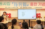 광주학강초등학교(이하 광주학강초) 학생들이 ‘동시 작가’로 등단했다. ‘동시 작가’로 데뷔한 학생들은 교내 독서 책쓰기 동아리 ‘동시하깡’ 4학년 회원 34명이다. ‘동시하깡’은 광주학강초가 시교육청이 추진하고 있는 ‘학생 저자 만들기’ 사업의 하나로 운영하고 있는 독서 책쓰기 동아리다. 학생들은 동아리에서 독서 토의, 감상, 동시 쓰기 활동 등을 하며, 문학적 감수성과 인문학적 소양을 키우고 있다. 지난해에는 5학년(현재 6학년) 학생 30명이 시집 ‘들리나요, 우리들의 파도소리가’를 선보였으며, 올해는 4학년 학생 34명이 각 10편씩 총 340편의 동시를 모아 ‘오늘 우린 맑음’을 출간했다. 특히 문주영 학생의 ‘철쭉과 벌’, 박지유 학생의 ‘사촌동생 노래’, 한수민 학생의 ‘밤의 사직타워’, 김나은 학생의 ‘불안한 소리’ 등 자연의 아름다움을 표현한 시부터 가족과의 에피소드 등 다양한 작품을 담았다. 광주학강초는 학생들의 ‘동시 작가’ 등단을 축하하기 위해 지난 2일 시청각실에서 ‘오늘 우린 맑음’ 출간 기념 낭송회를 개최했다. 이날 낭송회에서는 ‘동시 작가’로 데뷔한 11살 어린이 작가들이 문학적 성과를 나누며 가족, 친구, 독자들과 소통하는 시간을