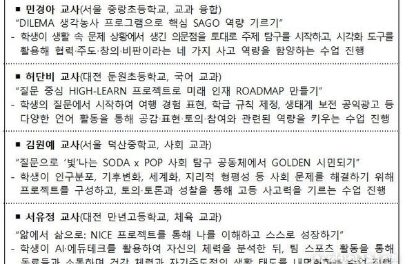 [대한민국교육신문] 인천광역시교육청AI융합교육원은 11월 23일부터 12월 21일까지 격주 일요일마다 연세대학교 국제캠퍼스에서 관내 초·중·고 교원을 대상으로 ‘인공지능(AI) 디지털 도구 활용 수업·평가 설계 직무연수’를 운영했다. 이번 연수는 교육과정을 심층적으로 분석해 학생 맞춤형 교육과정을 재구성하고, 인공지능(AI) 디지털 도구를 수업 설계부터 평가까지 융합·적용하는 교원의 전문성 강화를 목적으로 마련됐다. 연수 과정은 인공지능(AI)을 활용한 수업 설계와 자료 개발, 개별 맞춤형 수업 실행, 인공지능(AI) 기반 평가 도구 활용 등 실습 중심의 3개 과정으로 구성됐다. 특히 단순한 도구 활용을 넘어, 교사가 직접 미래형 수업 모델을 설계하고 실행하는 ‘미래 수업 디자인 전문가 과정’으로 운영된 점이 특징이다. 연수에 참여한 한 교사는 “인공지능 시대에 맞는 디지털 도구 활용 역량을 키우고, 학생 맞춤형 수업에 대한 전문성을 높이는 계기가 됐다”고 말했다. AI융합교육원은 연수 종료 후 만족도 조사와 현업 적용도 평가를 실시해 결과를 차기 연수 계획에 반영하고, 교육 현장의 요구에 부응하는 실질적인 연수 프로그램을 확대해 나갈 계획이다. [뉴스출처