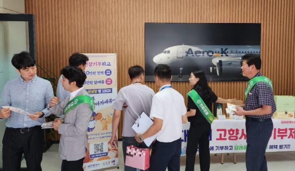[대한민국교육신문] 대전시는 4일 충북 청주시 흥덕구 오송읍에 위치한 에어로케이항공(주) 본사에서 ‘찾아가는 고향사랑기부 홍보 캠페인’을 개최했다.