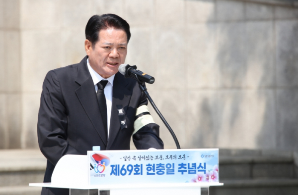심상원 전몰군경유족회장은 유족대표 인사말에서 “조국을 위해 산화하신 선열의 희생이 헛되지 않도록 나라를 더욱 굳건히 지켜나가자”며 “나라와 민족을 위해 목숨을 바친 국가유공자들의 희생을 잊지 말고 기억해달라”고 말했다.