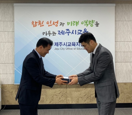 제주시교육지원청 김찬호 교육장은 제주시 관내 취약계층 아동과 청소년들의 꿈과 희망을 키우는데 사용토록 기탁하게 되어 기쁘다며, 앞으로도 수의계약시 교육전자조달시스템(S2B)을 적극 활용하여 청렴하고 투명한 계약문화를 만드는데 힘쓰겠다고 밝혔다.