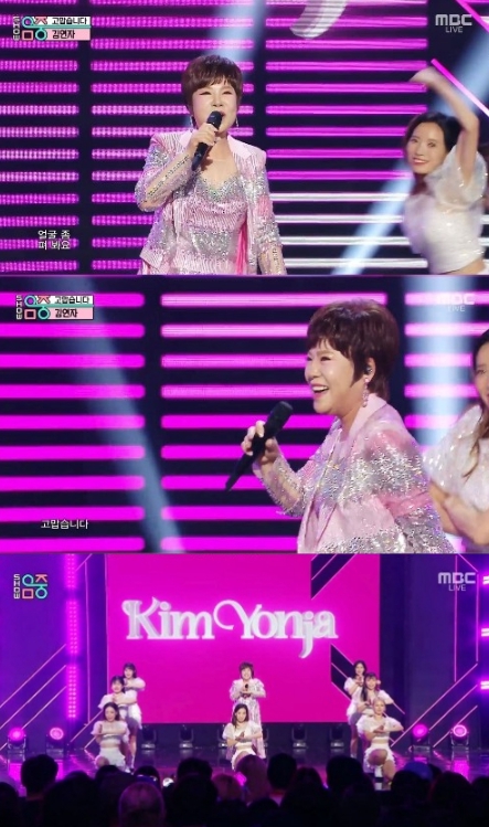 김연자는 8일 방송된 MBC '쇼! 음악중심'(이하 '음중')에 출연해 데뷔 50주년 기념 앨범 '더 글로리 - PART1'의 타이틀곡 '고맙습니다' 무대를 선보였다.