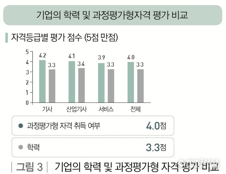 과정평가형 자격 취득자를 채용한 기업의 채용 담당자들은 과정평가형 자격이 학력보다 더 의미 있는 채용 신호로 인식했다.