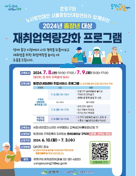 김미경 은평구청장은 “중장년층의 재취업을 위한 취업 역량을 높이는 데 도움이 되길 바란다”며 “중장년층 여러분의 많은 참여를 바란다”고 말했다.