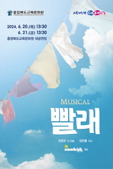 [대한민국교육신문] 충청북도교육청 직속기관 교육문화원은 20일, 21일 양 일간, 대한민국 대표 창작 뮤지컬 '빨래'를 기획공연을 중․고등학생을 대상으로 가졌다.