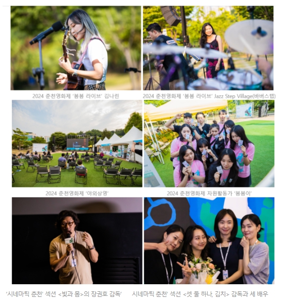 폭염에도 불구하고 공지천 청소년푸른쉼터의 ‘봄봄 라이브’와 야외상영 프로그램도 시민들의 좋은 반응 속에 이어졌다. 특히 저녁 7시부터 시작된 '월레스와 그로밋 더 클래식 컬렉션' 상영엔 가족 단위의 관객들이 상당수 영화제를 찾았다.