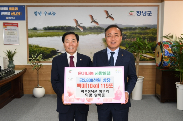 성낙인 군수는 “재부창녕군향우회는 3.1민속문화제와 낙동강유채축제 등 군의 여러 행사 때마다 많은 관심과 성원을 보내주시고 있다”라며, “성 회장님께서는 고향사랑기부금 기탁으로 군에 많은 도움을 주셨는데, 또 쌀 기탁을 통해 고향의 어려운 이웃에게 관심을 가져주셔서 다시 한번 감사드린다”라고 전했다.