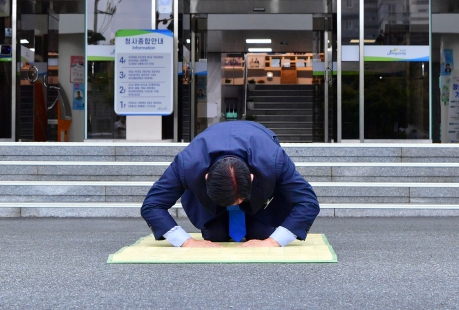 [대한민국교육신문] 김한종 장성군수가 민선8기 후반기 첫날인 1일 오전 청사 앞에서 군민을 향해 큰절을 올렸다. ‘군민을 섬기는 군정’을 상징하는 김 군수의 큰절은 2022년 취임 이후 민선8기 출범일과 시무식 날마다 어김없이 이어지고 있다.