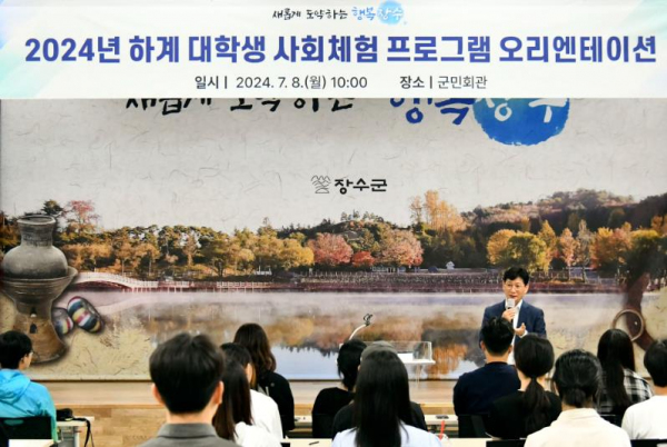 [대한민국교육신문] 장수군은 지난 8일 군청 군민회관에서 ‘2024년 하계 대학생 사회체험 프로그램’ 오리엔테이션을 진행했다고 밝혔다.
