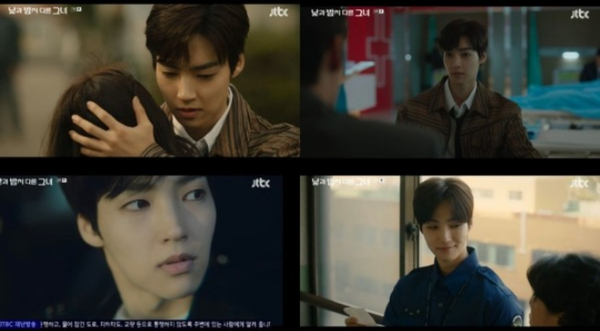 그는 이미진의 비밀을 지켜주기 위해 임순을 안아 그녀를 숨겼고, 결과적으로 이미진까지 껴안게 되는 극적인 장면을 완성했다. 스윗하게 머리를 감싸 안고 보호하는 백서후의 훈훈한 매력이 안방을 사로잡았다.