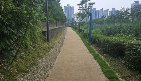 대죽도 근린공원 어싱길은 길이 1.1km, 폭 1.9m의 마사토 포장길로 조성했고, 세족장과 신발 보관함 등 편의시설을 갖췄으며, 경관배수로 위를 지나가는 목교에는 인조 잔디를 설치하여 쾌적하고 안전한 보행 환경을 제공했다.
