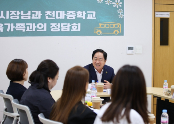 [대한민국교육신문] 주광덕 남양주시장은 지난 12일 화도읍 천마중학교를 방문해 교직원, 운영위원 및 학부모들과 정담회를 가지며 학교 발전을 위한 다양한 의견을 경청했다.