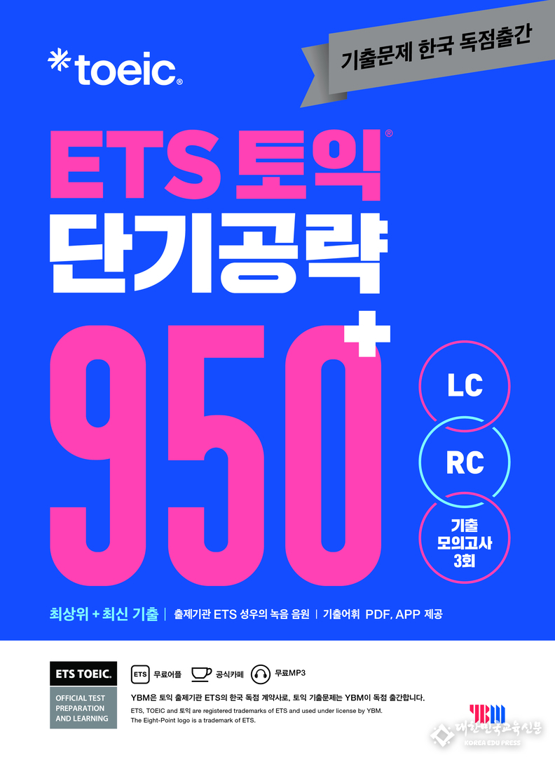 YBM 관계자는 “단기간에 고득점을 달성하려는 최근 토익 트렌드를 반영해 <ETS 토익 단기공략 950+>를 출간하게 되었다”며, “ETS 기출 전략과 문제로 구성된 교재를 통해 고득점 목표점수도 단기간에 충분히 달성할 수 있을 것” 이라고 전했다.