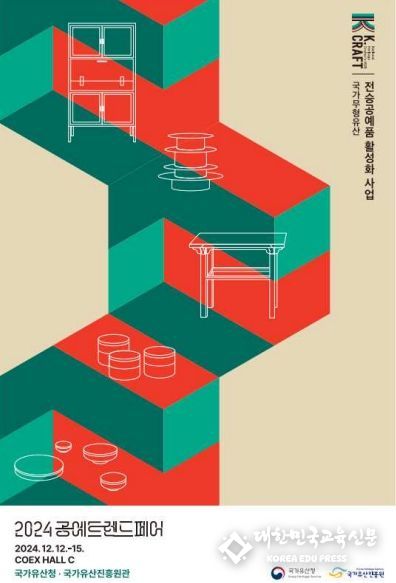 [대한민국교육신문] 국가유산청은 한국전통문화대학교, 국립무형유산원, 국가유산진흥원(이사장 최영창)과 함께, 오는 12월 12일부터 15일까지 코엑스 C홀(서울 강남구)에서 열리는 국내 최대 규모의 공예 전문박람회인 ‘2024 공예트렌드페어’에 다양한 작가들의 전시와 작품들로 참여한다.