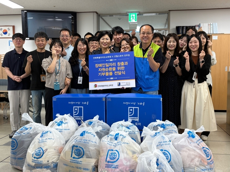 [대한민국교육신문] 전북특별자치도교육청 행정과 직원들이 재사용 가능한 물품을 기부하며 자원순환과 나눔 문화 실천에 동참했다.