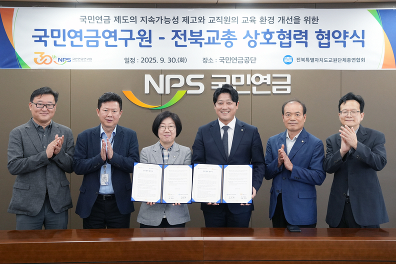 전북특별자치도교원단체총연합회(회장 오준영, 이하 전북교총)는 9월 30일 국민연금공단(이사장 김태현) 국민연금연구원과 상호협력 협약을 체결했다고 밝혔다. 이번 협약은 국민연금 제도의 지속가능성을 높이고, 교직원의 복지 증진과 교육 환경 개선, 미래세대 대상 연금 이해 교육을 함께 추진하기 위한 것이다.