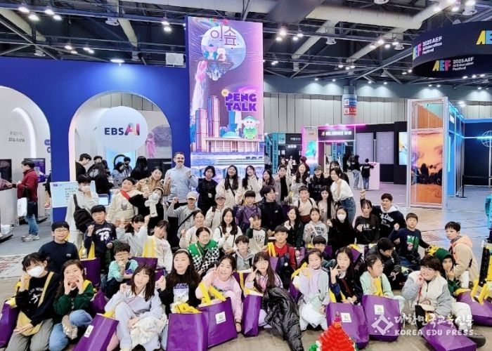 [대한민국교육신문] 경기도고양교육지원청에서 운영하는 전국 최초 '고양 WHY UP 영어공유학교' 초등학생 60명이 지난 11월 22일 EBS와 교육부가 공동 주최하는 AI교육 페스티벌 현장체험학습을 실시했다.