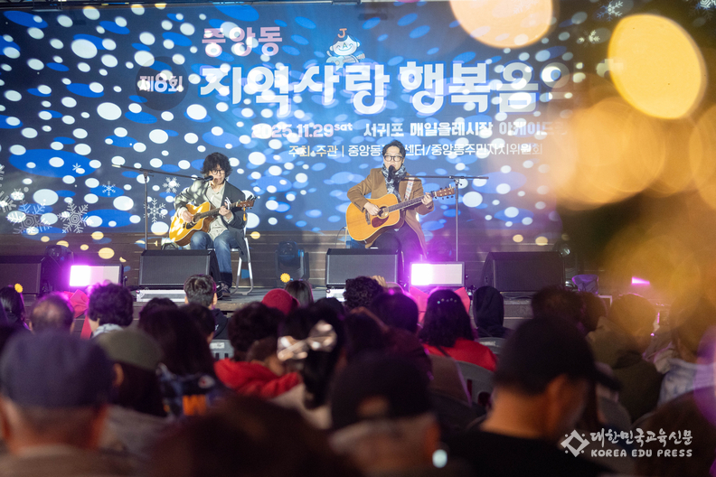 서귀포매일올레시장, 2025년 11월 29일 – 지역 주민과 방문객이 함께 어우러진 제8회 지역사랑 행복음악회가 서귀포 중앙동에서 성황리에 개최됐다. 이번 음악회는 중앙동주민센터가 주최하고, 중앙동주민자치위원회가 주관했으며, ‘지역사랑’과 ‘행복’을 주제로 세대와 계층을 아우르는 축제의 장을 마련했다.
