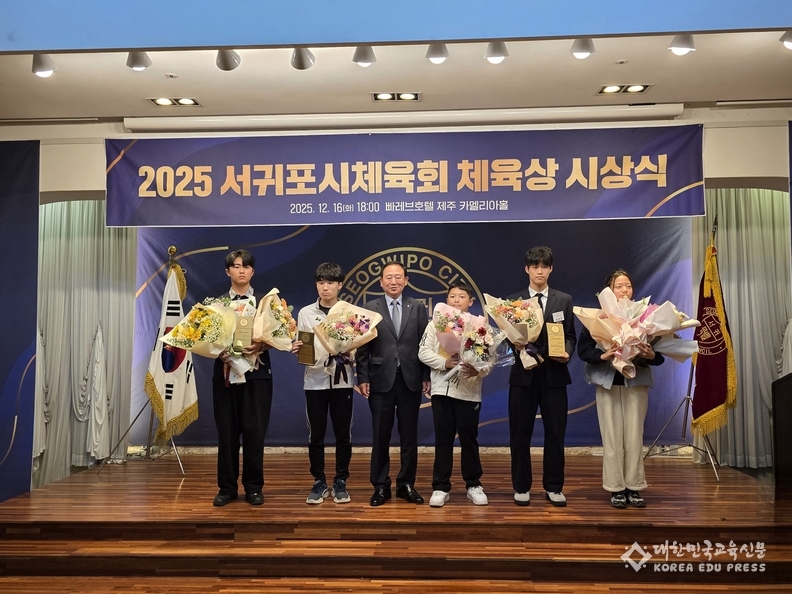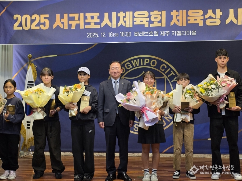 이날 시상식에는 서영삼 제주교원단체총연합회장도 참석해 수상자들을 축하하며 “학교체육과 생활체육, 엘리트체육이 함께 성장하는 서귀포 체육의 미래를 응원한다”고 격려의 메시지를 전했다.